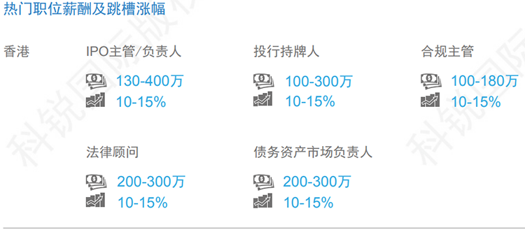 数据来源:猎头公司凯发K8国际资深行业专家对2019年热门职位薪酬范围及跳槽涨幅的预测。薪酬为基本年薪。单位为港币。
